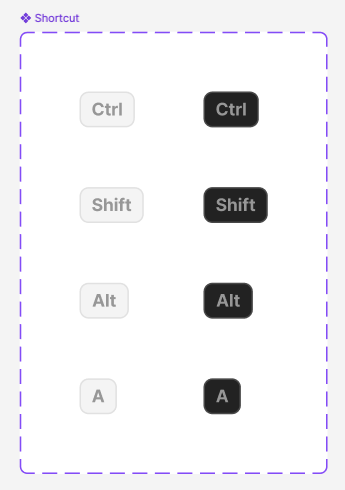 2번의 방식에서 변형을 주었는데 이렇게 관리할 때의 장점은 일단 컴포넌트를 만들고 컬러를 지정하는 게 빠르고 간편하다. 단점은 컴포넌트를 이미지처럼 묶었을 때 라이트 모드는 흰 배경, 다크 모드는 어두운 배경에서 보고 확인하는 게 좋은데 여기서는 그렇게 하지는 못한다. 게다가 피그마에서 제공하는 섹션 및 프레임 별로 제공하는 변수 모드를 중복해서 사용해야 하는 등 억지로 가능은 한데 추천하지는 않는다. 아래와 같은 상황에서는 추천한다.