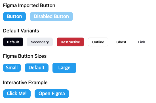 예상이지만 Variants를 포함한 버튼 컴포넌트는 붙여 넣기가 제대로 되지 않는 거 같다. 코드를 뜯어보니 기존 shadcn 버튼 컴포넌트에 Figma라는 모호한 props를 추가해서 활용하는데 제일 큰 사이즈의 버튼만 반영되다 보니 이상한 결과가 나왔다. 아마 이 부분은 빠르게 수정될 거라 예상한다.