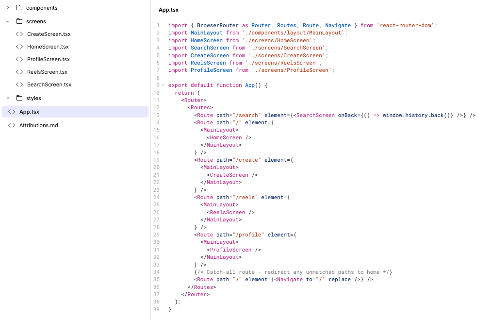 혹시나 해서 화면 간 이동이 가능하냐고 요청을 했는데 처음에는 App.tsx 내에서만 상태 관리를 통해 화면을 교체시켜주기만 하였다. 그래서 폴더 기반이든 전통적인 라우트 방식이든 구현하고 필요하다면 화면 컴포넌트를 별도로 정리해 달라고 요청하였는데 결과는 꽤 괜찮았다. 이왕이면 Next의 폴더 기반 라우트 방식이었다면 더 깔끔했을 거 같지만