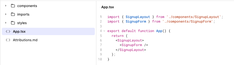 프롬프트를 대충 작성하긴 했지만 프레임 내에서 위치, 크기 정보가 모두 있을 텐데 그걸 감안해도 퀄리티가 처참하다. 게다가 구현된 화면은 App.tsx 파일 하나에 때려 박다 보니 1,300여 줄이나 되어서 컴포넌트 단위로 구분해 달라고 요청을 했는데 다행히 컴포넌트로 구분을 해준다. 아직은 화면 단위 프레임을 통째로 때려 박는 건 리스크가 크다고 생각한다.
